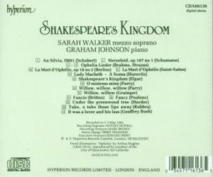 Исполнители: Walker Sarah, mezzo / Уокер Сара, меццо Johnson Graham, piano / Джонсон Грэм, фортепиано