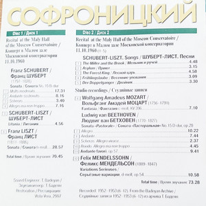 Софроницкий. Том 11. Концерт в Малом зале Московской консерватории 11.10.1960. Студийные записи
