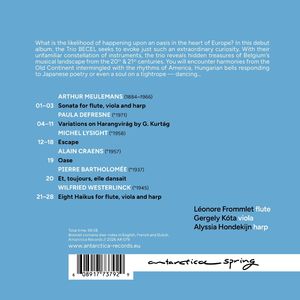 Каковы шансы найти оазис в центре Европы? Своим дебютным альбомом трио BECEL стремится пробудить именно это необычное любопытство. Благодаря необычному сочетанию инструментов трио открывает скрытые сокровища бельгийского музыкального ландшафта XX и XXI веков. Вы встретите гармонии Старого континента, смешивающиеся с ритмами Америки, венгерские колокольчики, отвечающие на японскую поэзию, или даже душу на канате - танцующую...