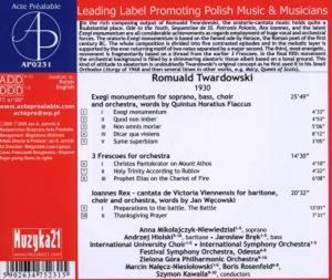 Romuald Twardowski (geb. 1930) - Exegi monumentum für Sopran, Bass, Chor & Orchester (CD)