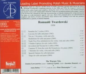 Исполнители: Ławrynowicz Joanna, piano / Лаврынович Иоанна, фортепиано Domżał Jarosław, cello / Домжал Ярослав, виолончель Gębski Andrzej, violin / Гембский Анджей, скрипка Betley Anna, viola / Бетлеи Анна, альт Hausenplas Piotr, cello / Хаусенпляс Пётр, виолончель Betley Anna, violin / Бетлеи Анна, скрипка Romuald Twardowski (geb. 1930) / Romuald Twardowski (geb. 1930)
