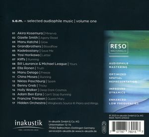 Первое издание новой компиляции s.a.m. Музыкальное разнообразие сочетается с бескомпромиссным аудиофильским качеством. Каждый трек отличается тонким чувством детализации - от трогательных композиций певцов-песенников до замысловато аранжированных джазовых и электронных записей. Система RESO Mastering 2.0 раскрывает уникальную глубину и нюансы каждой записи. Ultimate High Quality CD характеризуется исключительно точным процессом производства, который гарантирует, что даже обычные CD-проигрыватели точно воспроизведут все звуковые нюансы. Каждая обложка, созданная с любовью, отражает стремление сделать музыку слышимой и визуально уникальной. Начало серии для взыскательных слушателей, которые не просто потребляют музыку - они ее воспринимают.