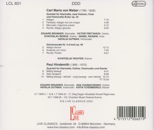 Исполнители: Gutman Natalia, cello / Гутман Наталья, виолончель Richter Svyatoslav, piano / Рихтер Святослав, фортепиано Tretyakov Viktor, violin / Третьяков Виктор, скрипка Brunner Eduard, clarinet / Бруннер Эдуард, кларнет Raiskin Daniel, viola / Рейскин Даньел, альт Chumachenco Ana, violin / Чумаченко Анна, скрипка Moroz Sviatoslav, violin / Мороз Святослав, скрипка Tchemberdji Katia, piano / Чемберджи Катя, фортепиано