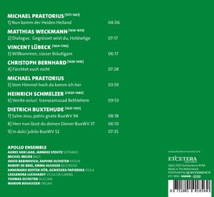 Рождественская история вдохновляла бесчисленное множество композиторов на протяжении веков. Тайна рождения, хлев, ангелы и пастухи образуют яркую сцену, которую музыкально изображали по-разному, иногда буйно, с трубами и литаврами - вспомните Рождественскую ораторию Баха, - а иногда, как на этой записи, в интимной атмосфере. Произведения принадлежат композиторам немецкой традиции до Баха: Букстехуде, Векману, Любеку, Бернхарду, Шмельцеру и Праэториусу, чьи мотеты основаны на лютеранских хоральных мелодиях.